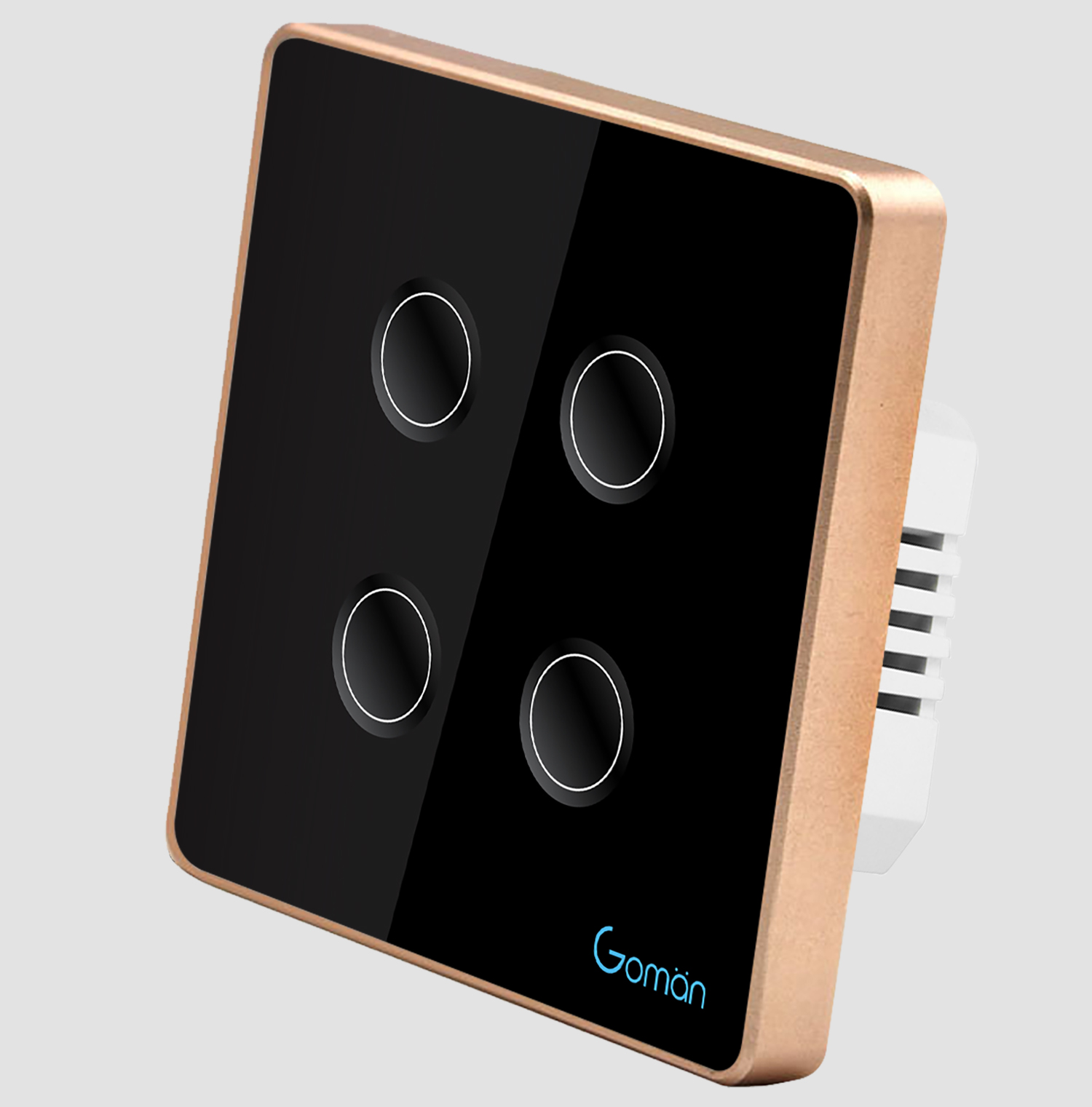 Công tắc cảm ứng Zigbee Goman mặt lõm có 4 loại chính: 1 nút, 2 nút, 3 nút, 4 nút sử dụng công suất đầu vào 220V – 50Hz.