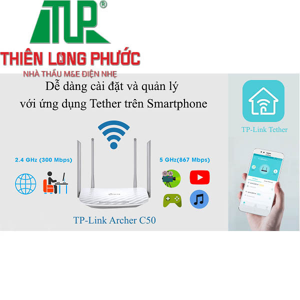 - Dễ dàng cài đặt và sử dụng Archer C50 chỉ trong vài phút nhờ giao diện trực quan và ứng dụng Tether mạnh mẽ. Tether cũng cho phép người dùng quản lý cài đặt mạng từ bất kỳ thiết bị Android hoặc iOS nào, bao gồm kiểm soát của phụ huynh và kiểm soát truy cập